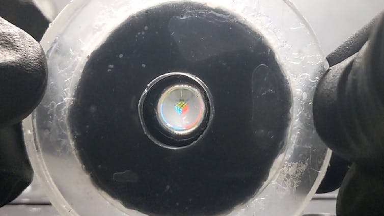 This rubbery disc is an artificial eye that could give soft robots vision. Image credit: Corey Zheng/Georgia Institute of Technology.