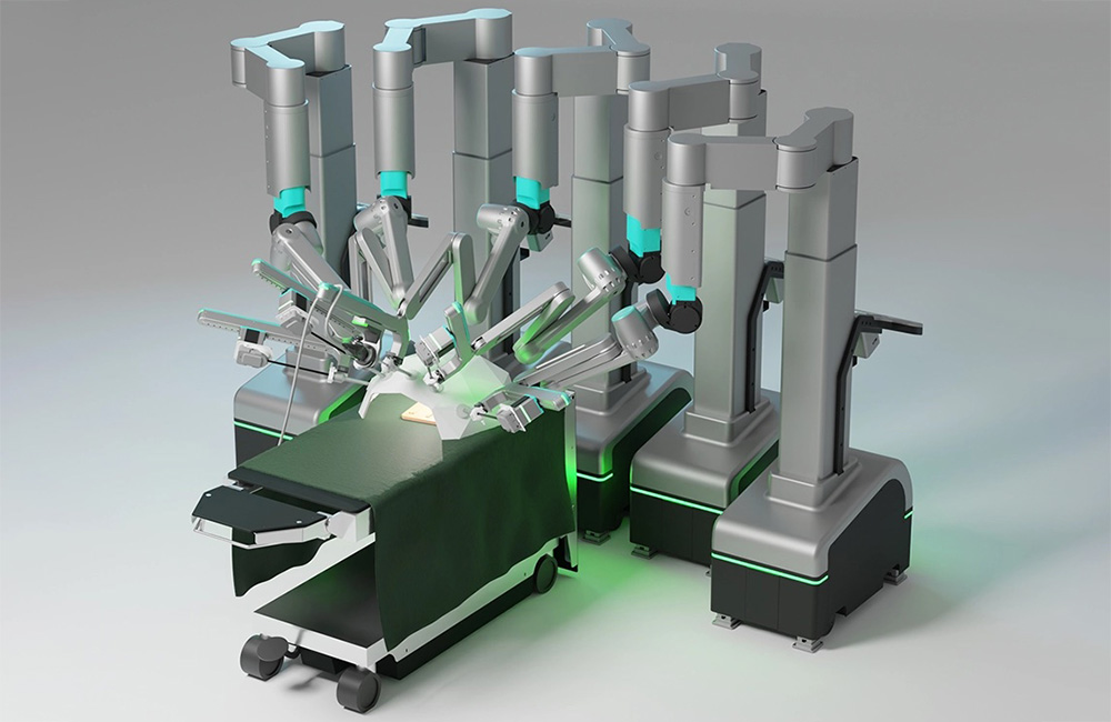 The system has an open-faced ergonomic Surgeon Command Centre, a 32-in. 3D 4K monitor, and a 23-in. 2D touch-panel monitor to display all patient-related information. It also provides a virtual real-time image of the robotic Patient Side Arm Carts and can superimpose 3D models of diagnostic imaging.