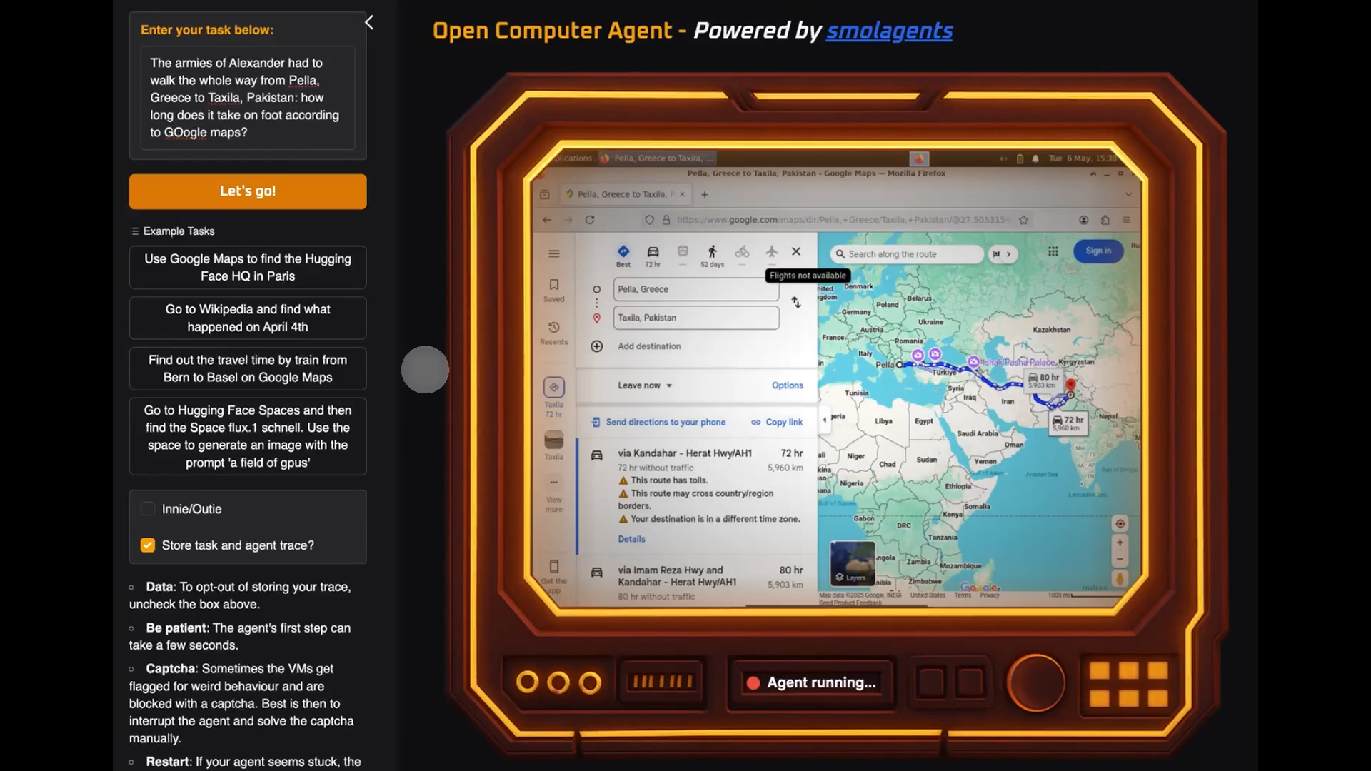 Part of the company’s ongoing “smolagents” initiative, the Open Computer Agent can engage with websites and apps like you would, handling an invisible mouse and keyboard to complete requests. The AI can open a browser, type things into forms, click buttons, and more. Ask it to find directions, and it’ll go to Google Maps, enter the origin and destination, and show you the route like a dutiful digital chauffeur.